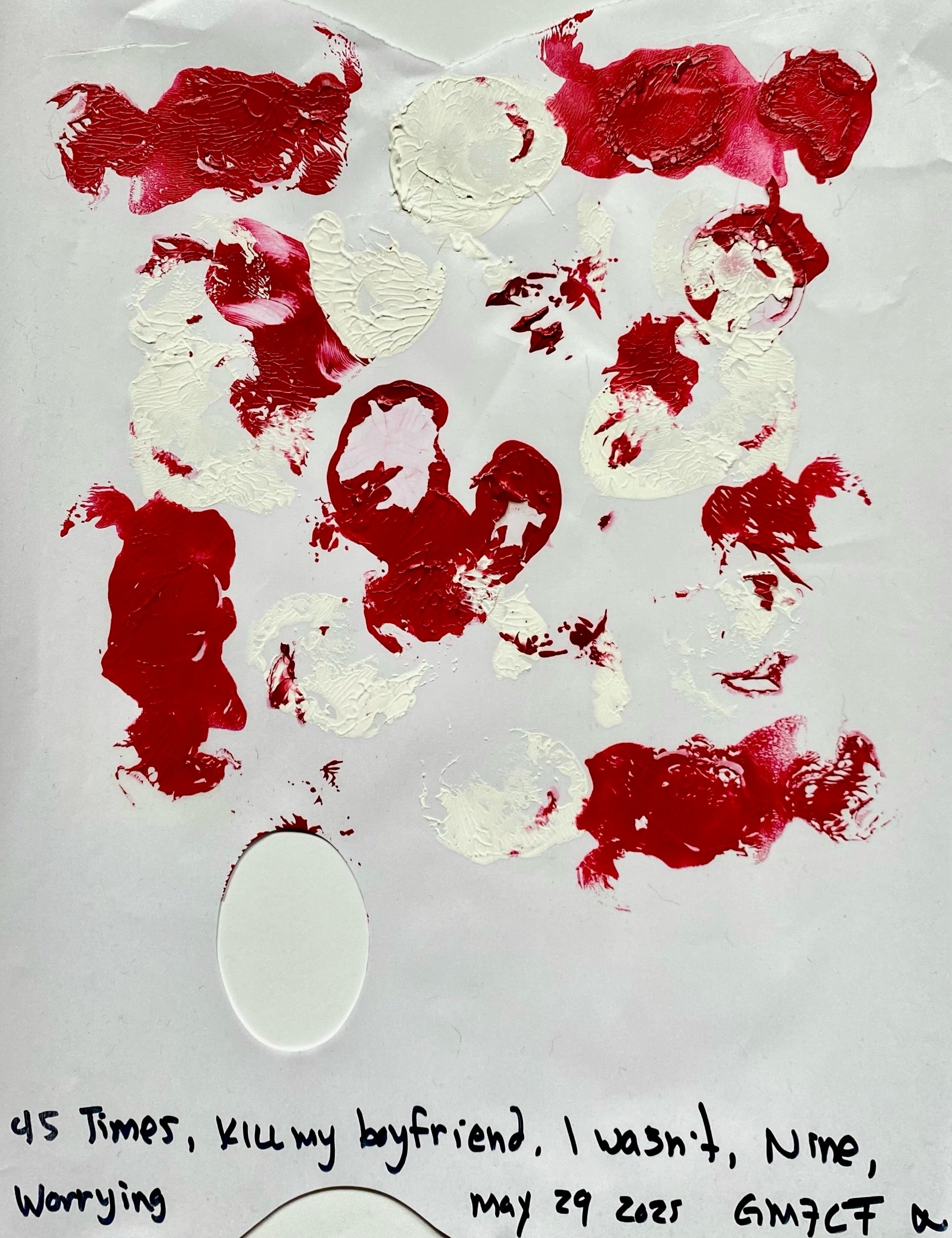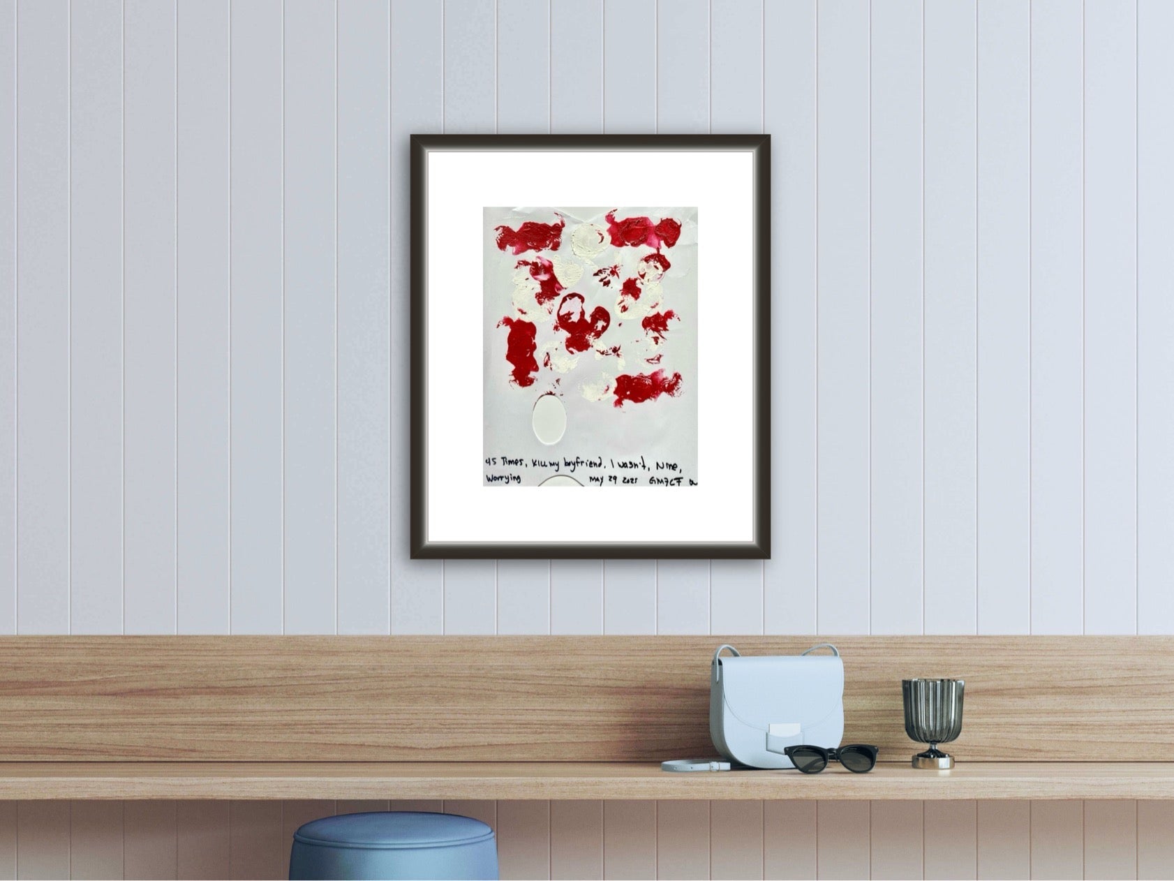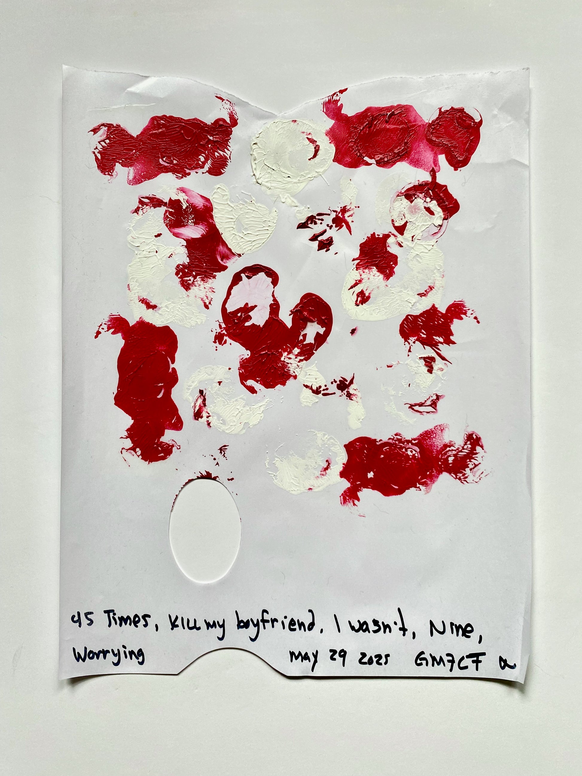 The What Remains artworks for the (currently titled) Anti-Erotic series are artworks made on palette paper with the paint used to create each named artwork. These are abstract pieces made by using the paint for the original and then smearing it around in a mindful, meditative way. Or sometimes letting them play as they fell.
