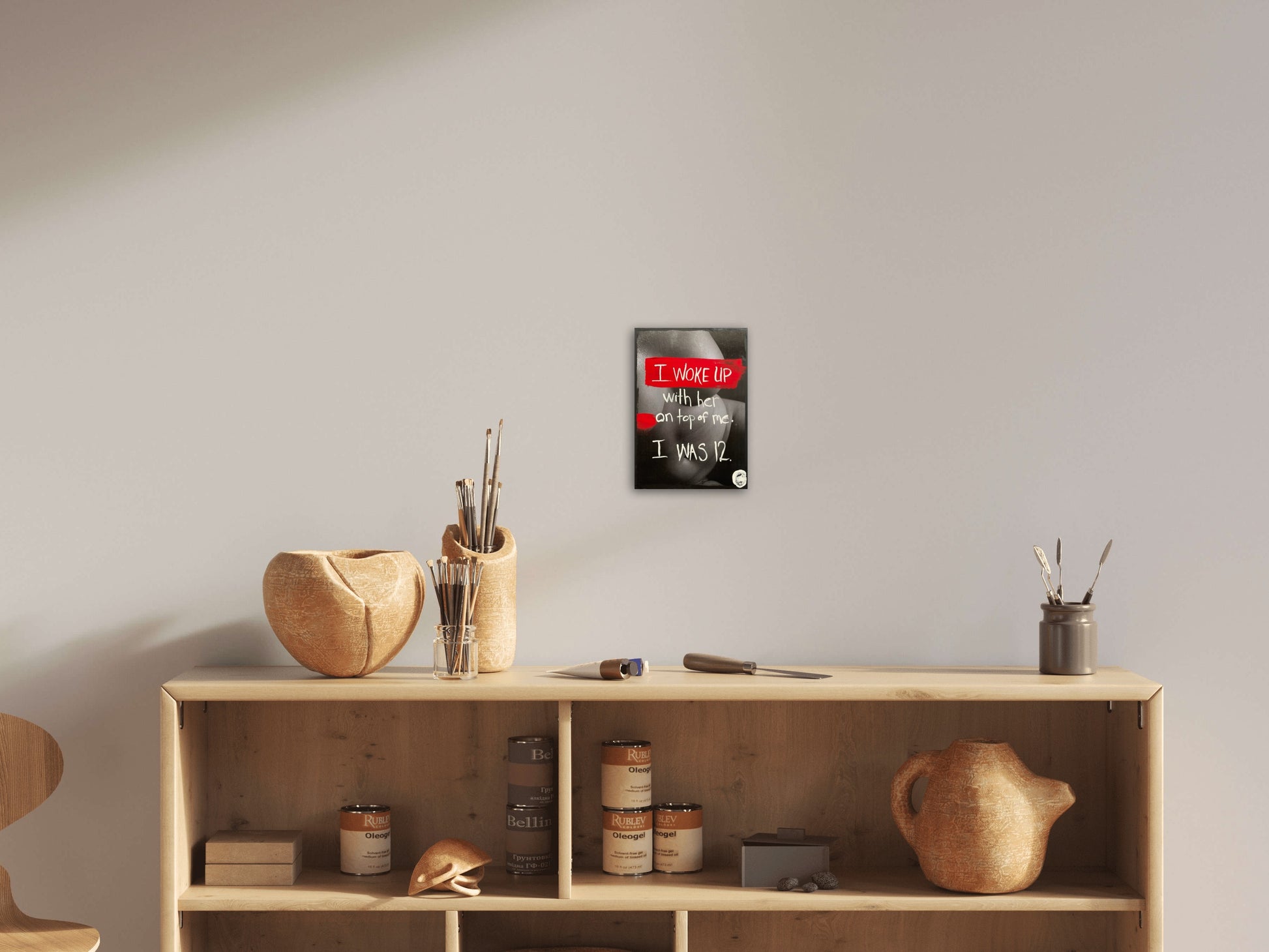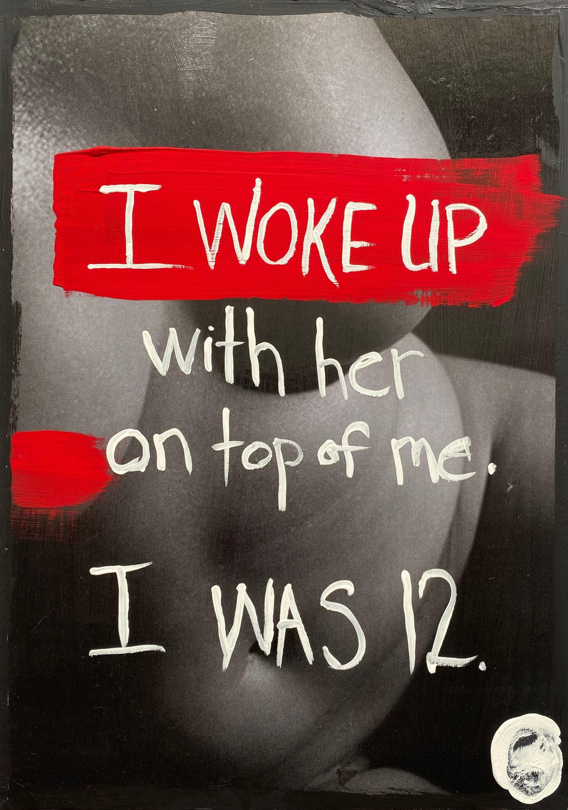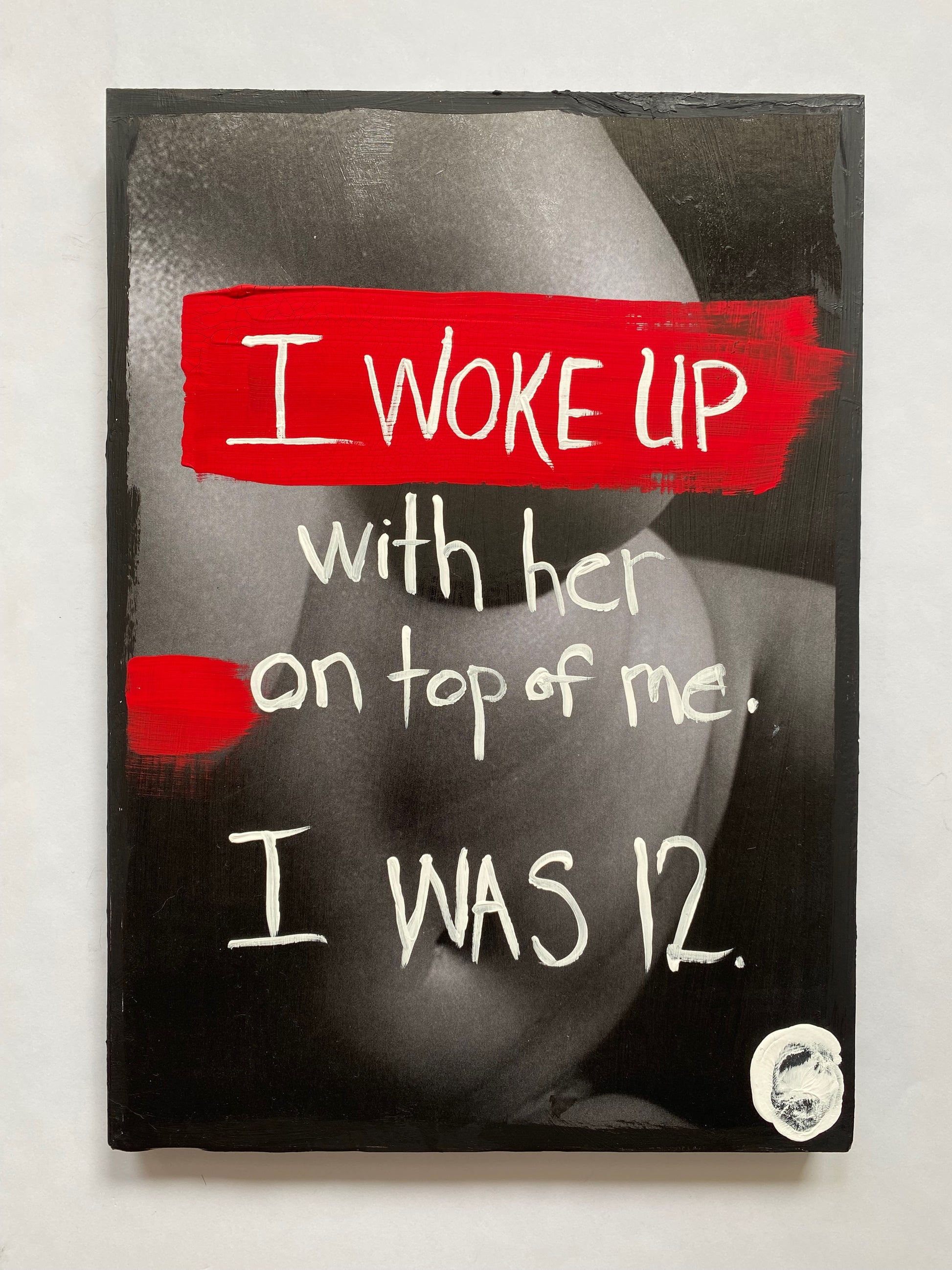 Materials: Art Panel, black + white photo, gouache, acrylic gel medium