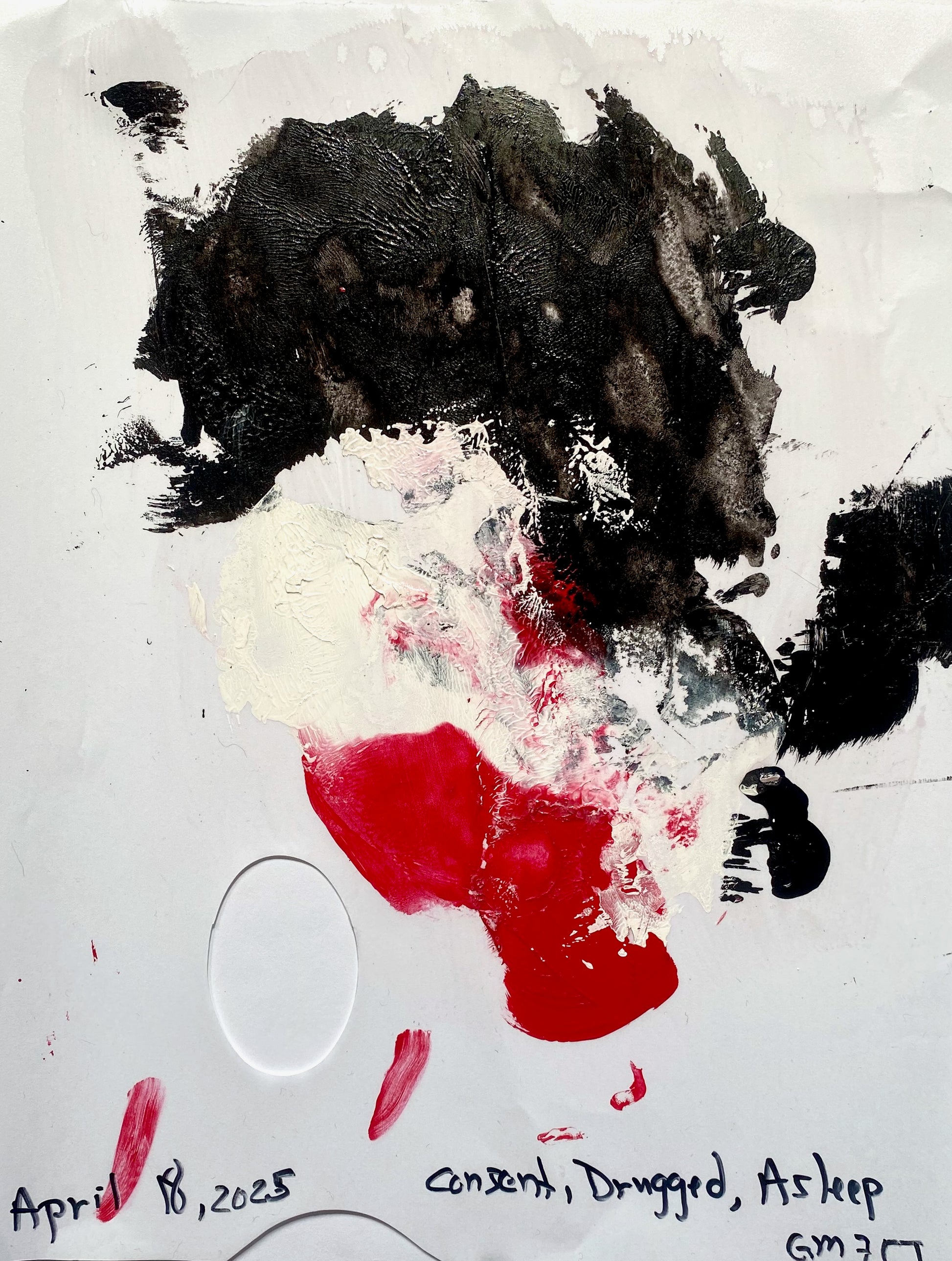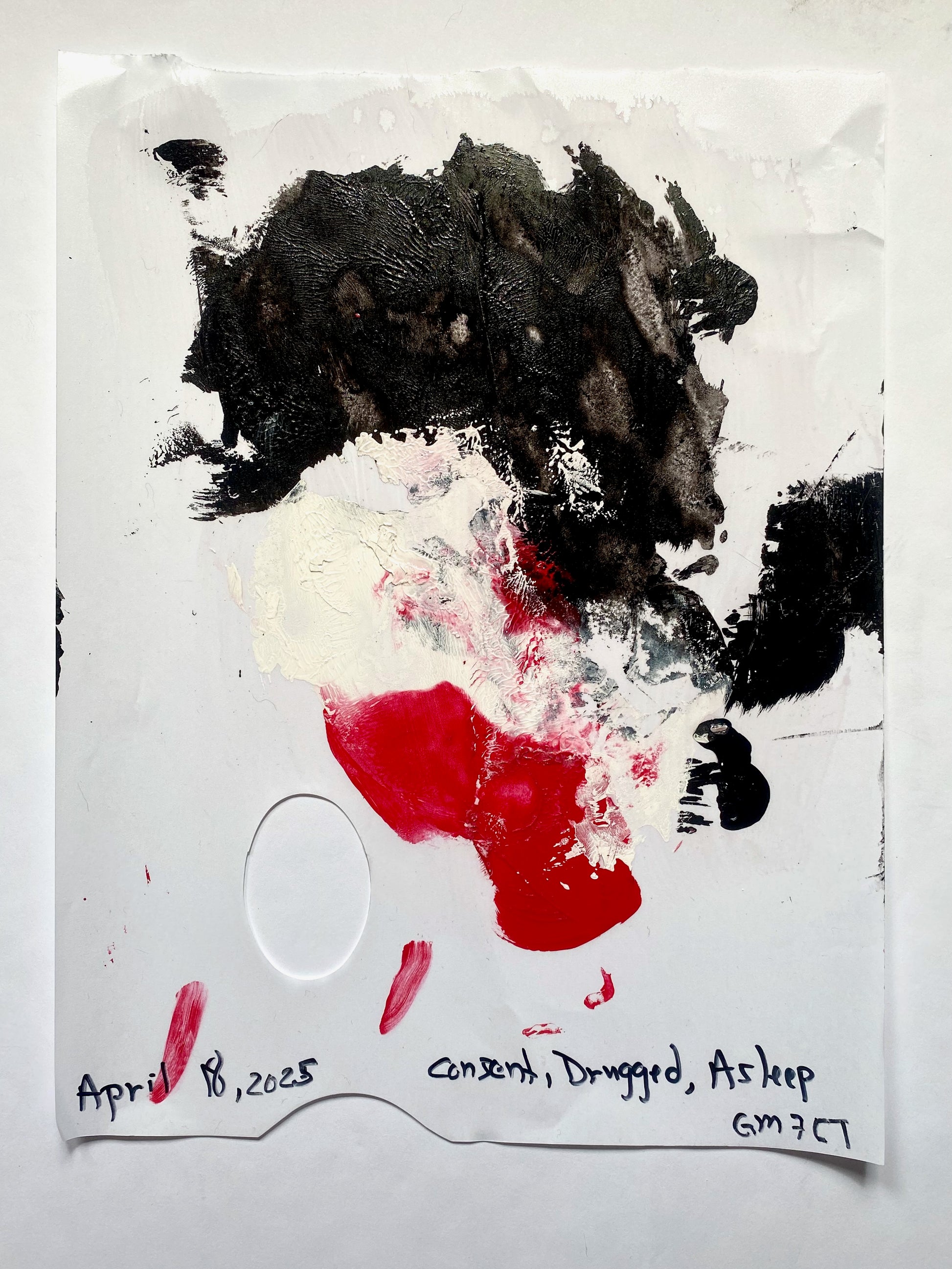 The What Remains artworks for the (currently titled) Anti-Erotic series are artworks made on palette paper with the paint used to create each named artwork. These are abstract pieces made by using the paint for the original and then smearing it around in a mindful, meditative way. Or sometimes letting them play as they fell.