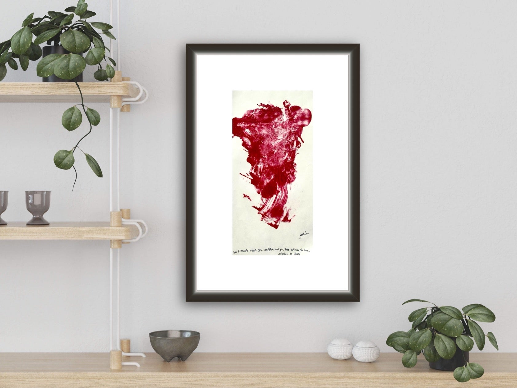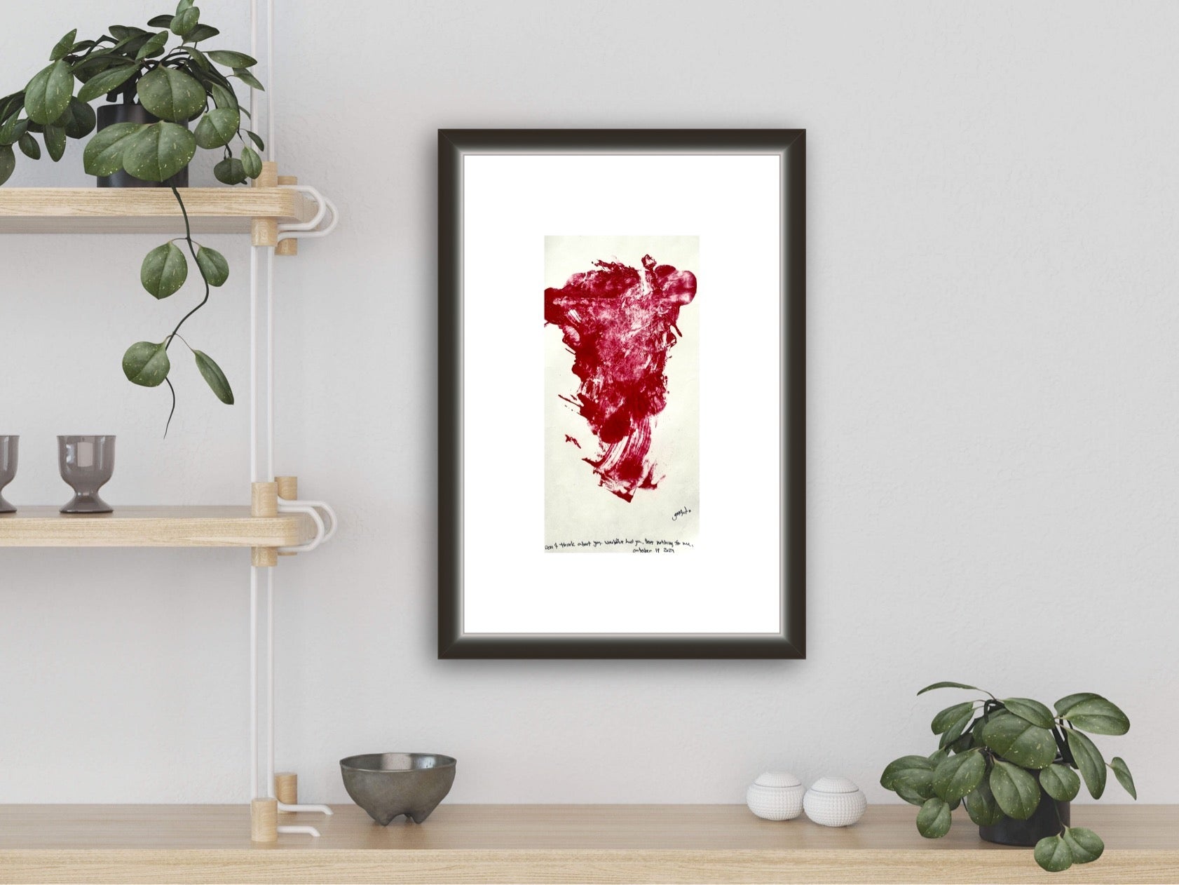 In the in-room wall images, the original is pictured first, the print is pictured second. The print is bigger so these photos are the same to show the size difference.