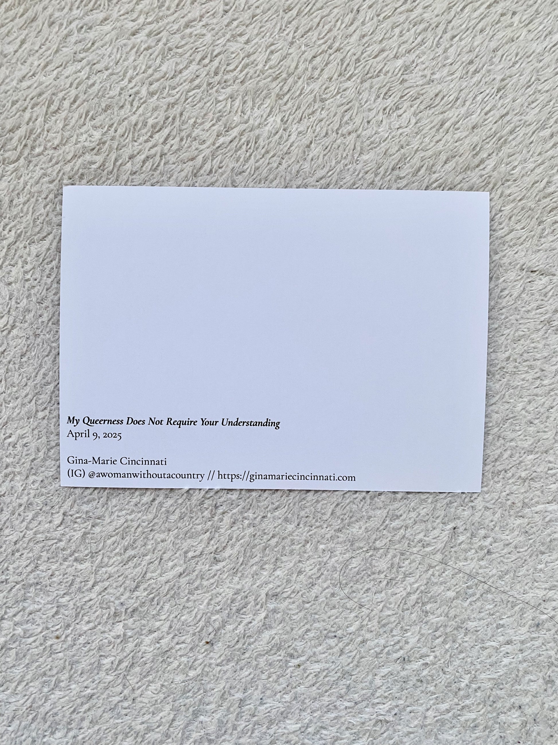 My Queerness Does Not Require Your Understanding A6 Postcard